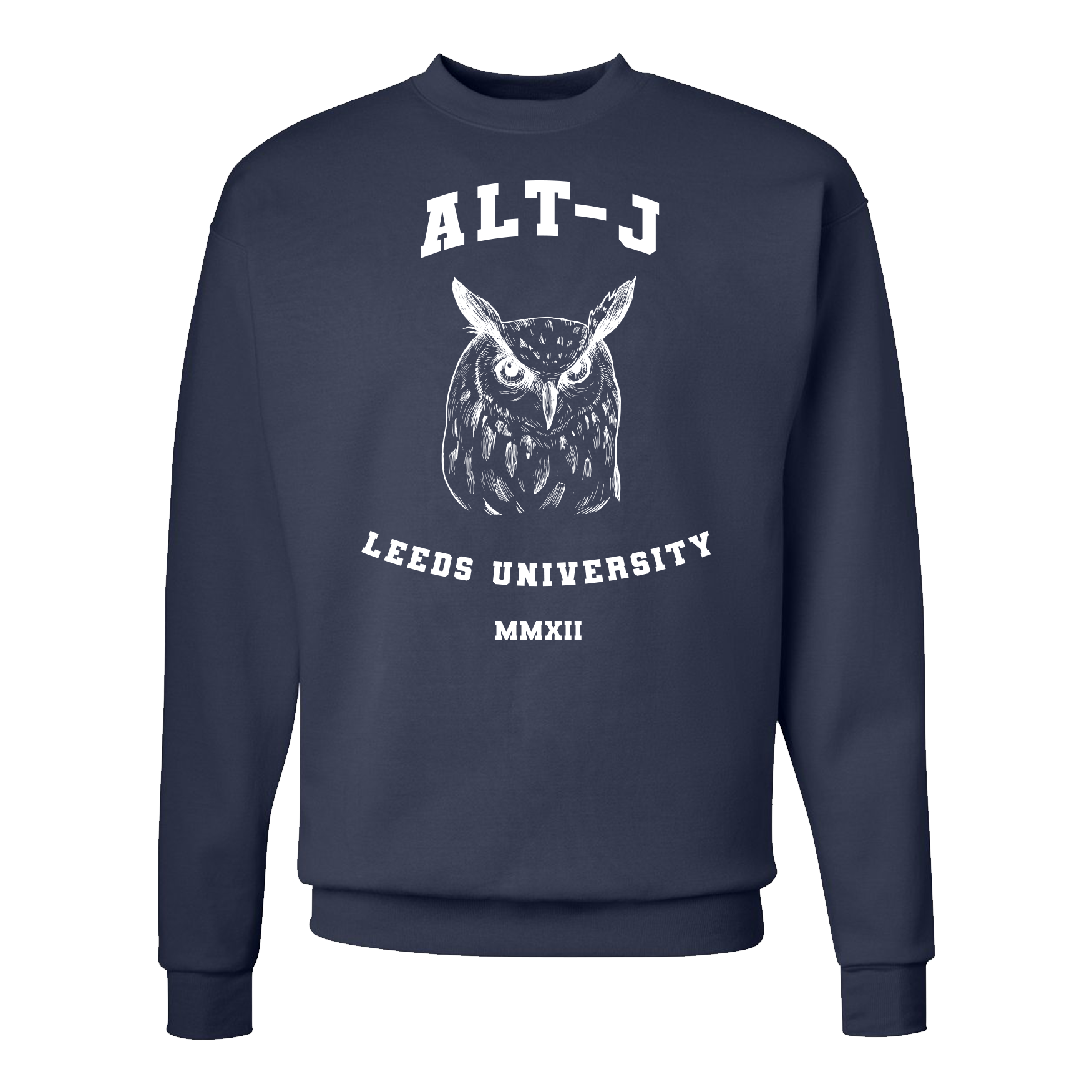 The alt-J ‘Leeds University Crewneck’ features an owl illustration above ‘Leeds University’ and the year 2012 written in roman numerals. This design is an ode to where it all started for the band in West Yorkshire, England, and the year that AAW was released for the world to listen.